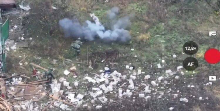 RT描述称,无人机拍摄的视频显示,两名俄军突击队员正接近一栋被毁建筑,附近有一头家猪。当领头士兵距离地雷仅几英尺时,这头猪突然冲出并引爆地雷。两名士兵随即改变路线,沿着附近围栏的残骸前进。